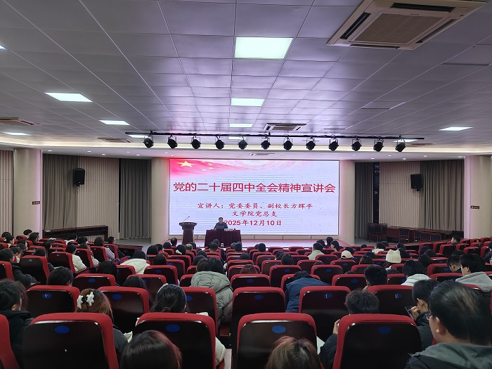 12月10日晚,365英国上市网站官网学习贯彻党的二十届四中全会精神宣讲报告会在文端楼二楼报告厅举行,校党委宣讲团成员、校党委委员、副校长方辉平主讲。365英国上市网站官网全体教师、学生党员、入党积极分子、学生干部等参加会议。宣讲会由党总支书记汪方学主持。