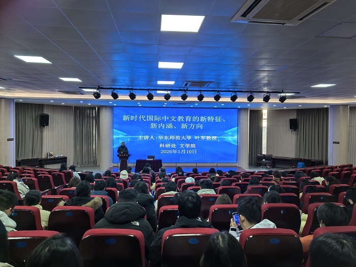 2026年1月10日上午,华东师范大学国际汉语文化学院副院长、博士生导师,叶军教授应邀作题为“新时代国际中文教育:新特征、新内涵、新任务”的专题学术报告。会议由365英国上市网站官网院长沈昌明主持,我院师生约150人参加报告会。